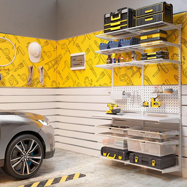 Гардеробная система хранения ПРАКТИК HOME — это надежное решение для обустройства гаража, мастерской или кладовой. Главным преимуществом является универсальная перфопанель, которая позволяет организовать идеальное хранение ручного и электроинструмента. Благодаря комбинации квадратной перфорации 10х10 мм и круглых отверстий диаметром 7 мм, панель совместима с большинством российских и зарубежных крючков или держателей.